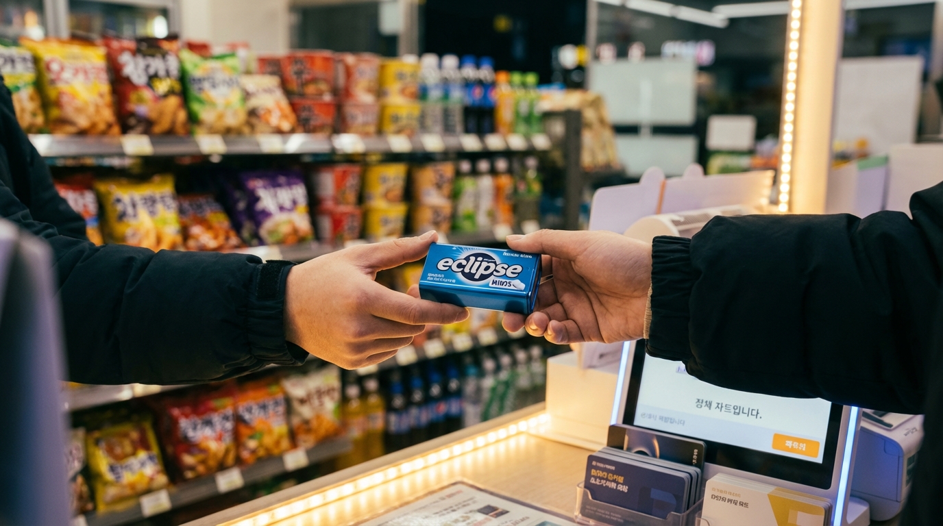 그리고 잠시 편의점에 들렀습니다. 계산대 옆 진열대에서 익숙한 파란색 케이스가 눈에 들어왔습니다. Eclipse(이클립스) 민트였습니다. 수없이 지나쳤던 그 제품이, 어젯밤 읽은 단어와 겹치는 순간, 갑자기 다르게 보이기 시작했습니다.