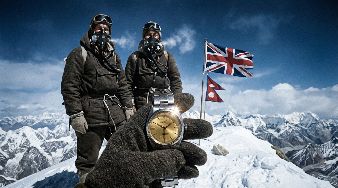 1953년, 영국 왕립지리학회가 주도한 에베레스트 원정대가 조직되었습니다. 대장 존 헌트(John Hunt) 경은 롤렉스에 시계 지원을 요청했고, 롤렉스는 원정대에 오이스터 퍼페츄얼(Oyster Perpetual) 시계들을 제공했습니다.